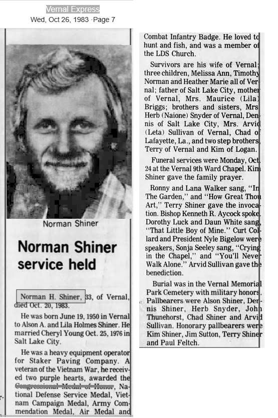 Info Sheet - SP4 Norman H. Shriner Died 20 August 1983
