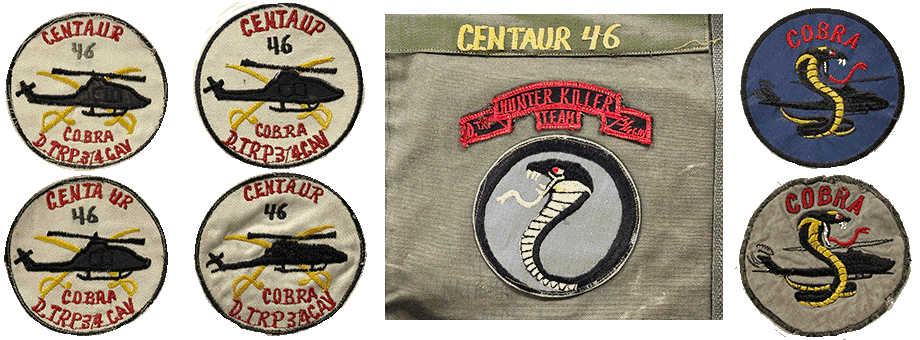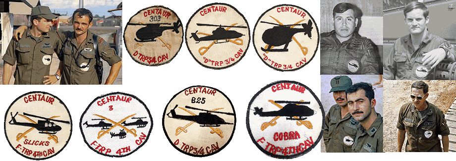 Patches from Sandy McLeod: I was a Centaur (Centaur 46) from July, 1970 to June, 1971. I believe I wore the D Trp ¾ Cav patches during my entire tour since I don’t recall changing out my patches when we were redesignated as F Troop, 4th Cavalry, 1st Aviation Brigade o/a February, 1971. Â