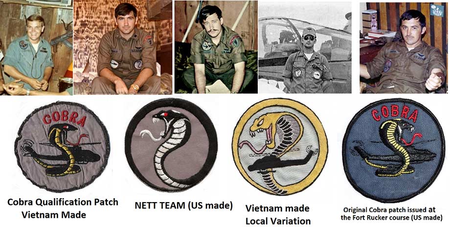 rank, most likely when things came together under the 1st Aviation Bde. The recognizable white circular patches seem to have burst onto the scene in 1969, so it would be most interesting to see who was involved and the commander who gave approval. They reached their zenith by the time the unit changed to F-Troop, with a sharp drop in wear until the unit left vietnam. Of course men had several uniforms in the wear and wash cycle and many would not have had a pocket patch. Group shots are a useful indicator, the largest ratio I have found to date, is 5 men out of a group of 11. Almost exclusively worn on the left pocket, there seems to have been a high take up amongst pilots of the call sign # addition. So far, only 1 crew chief / gunner tail number variation, has